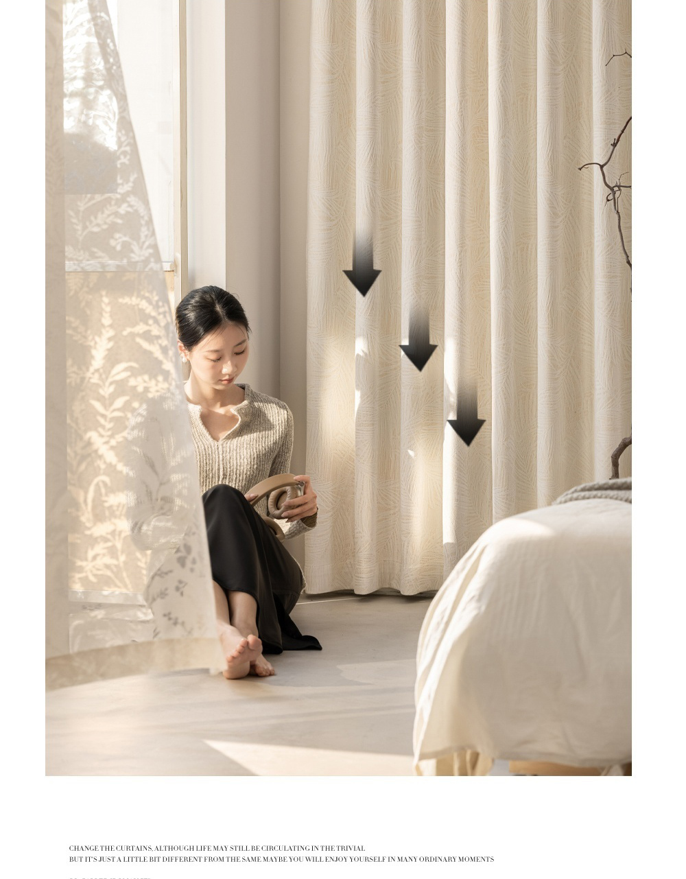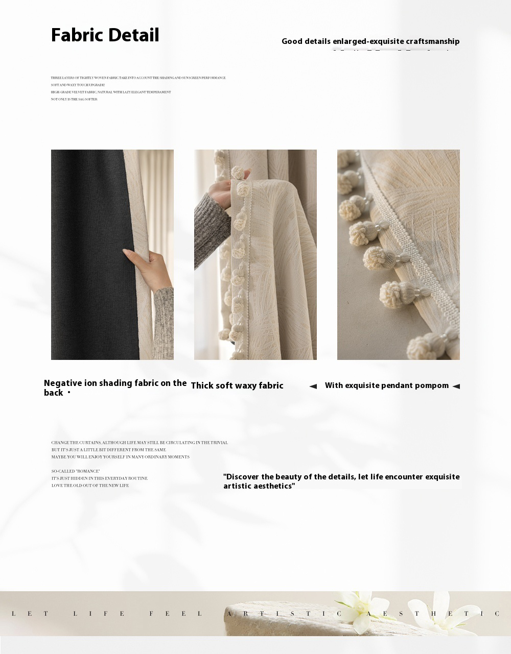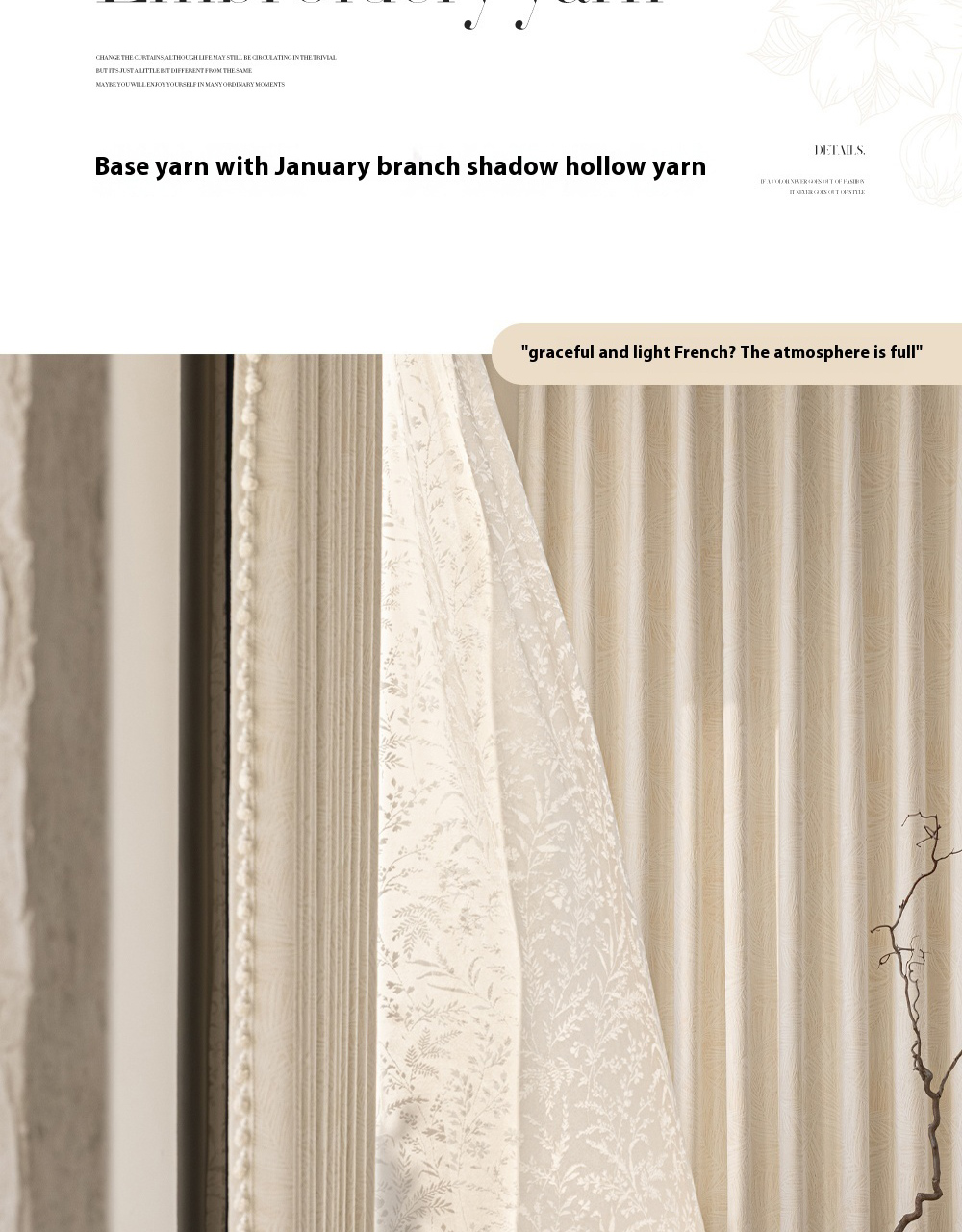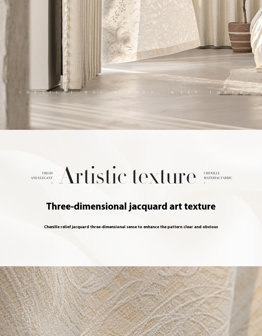 1 perforated French cream style curtain, made of chenille jacquard fabric, new light luxury curtain, modern and simple bedroom shading and insulation