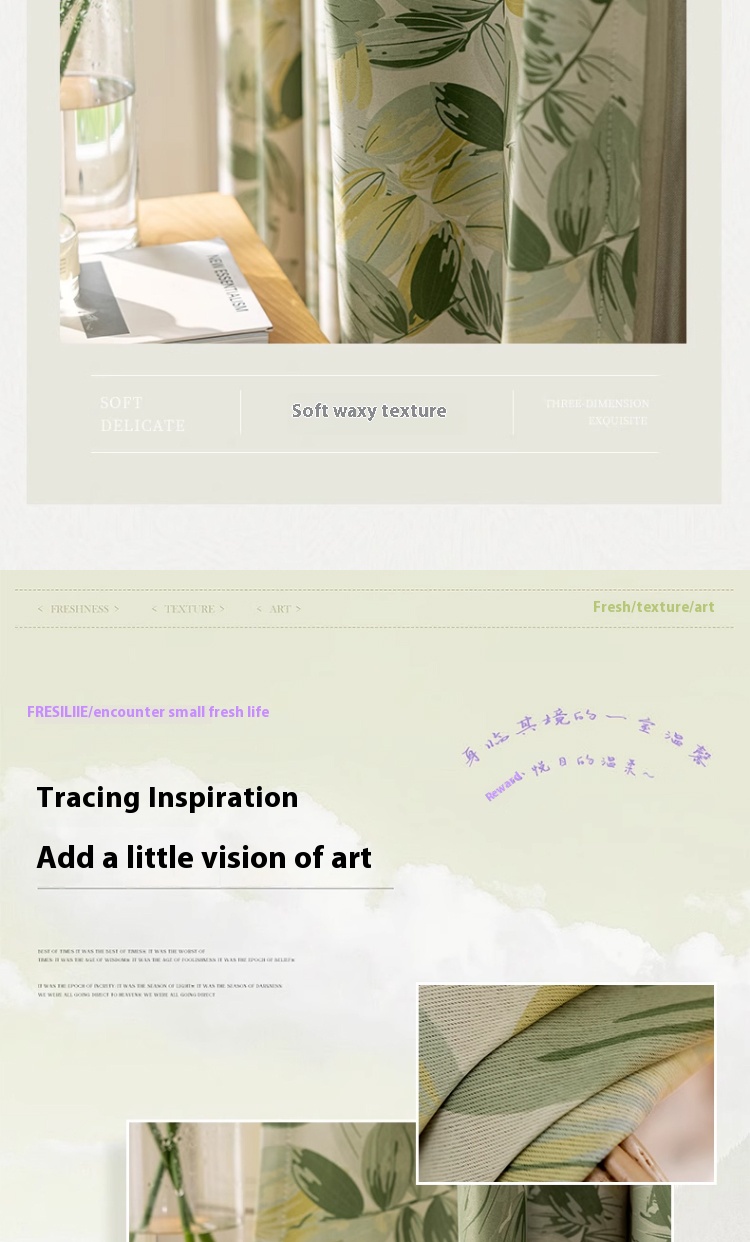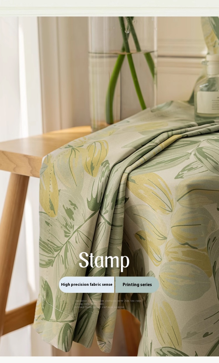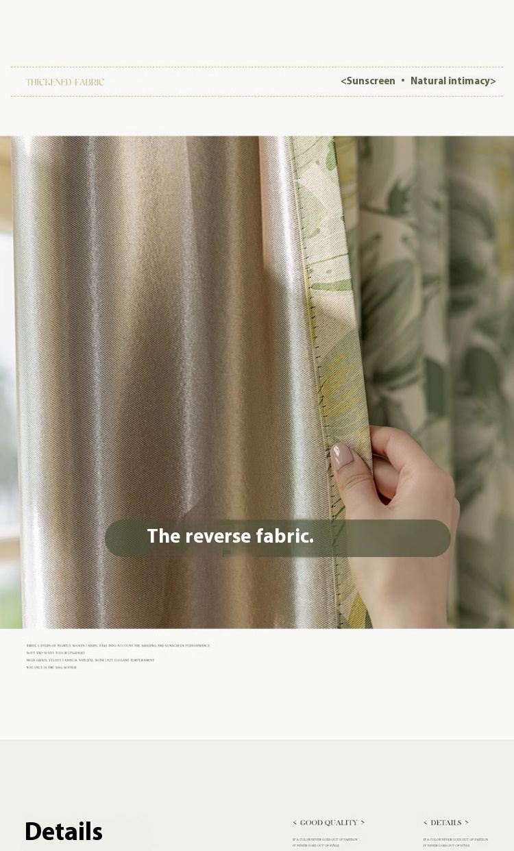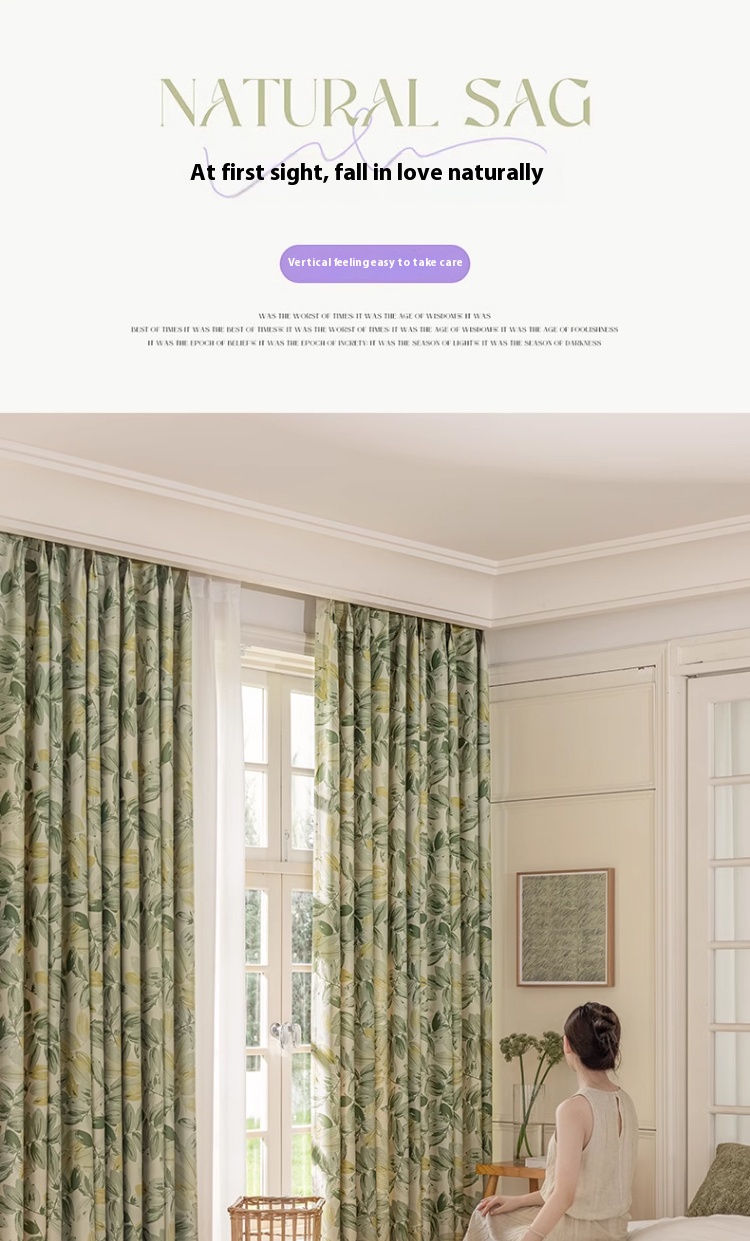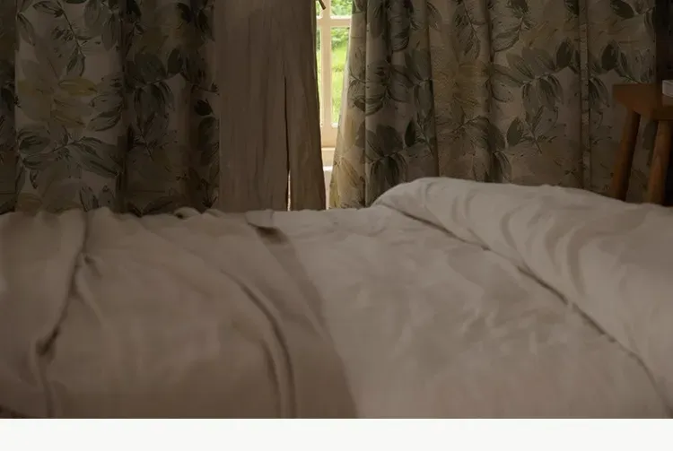 1 perforated French green leaf curtain, polyester fiber printed single-sided blackout curtain, suitable for bedroom, living room and other room types