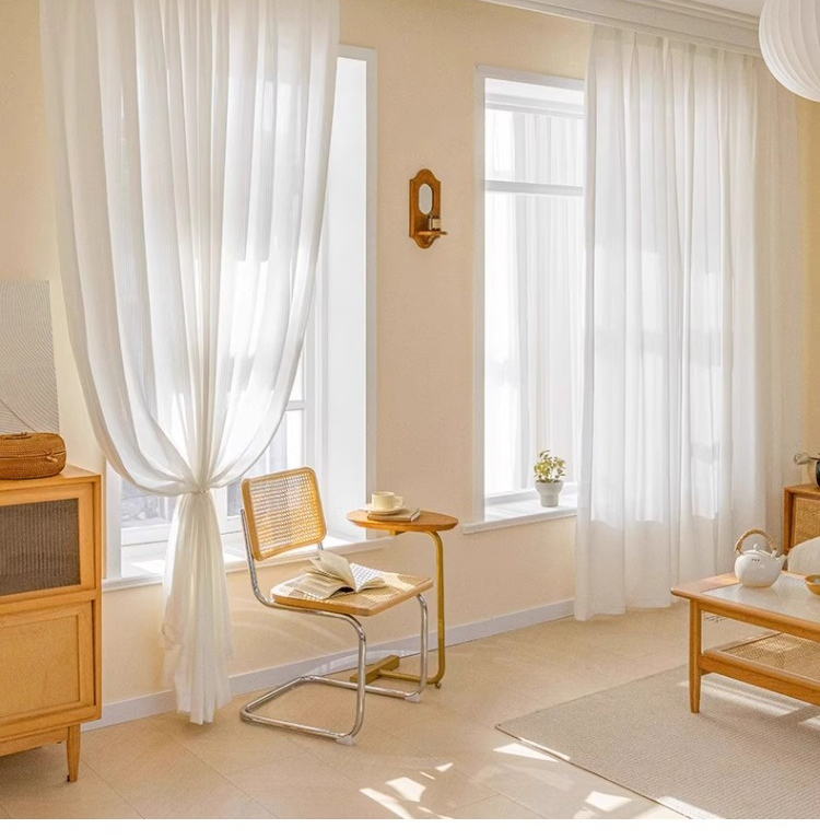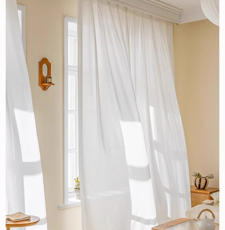 1 piece of cream color ribbon lace window screen, dream sunscreen and heat insulation screen curtain, living room curtains are opaque to light, French light luxury bay window partition new model