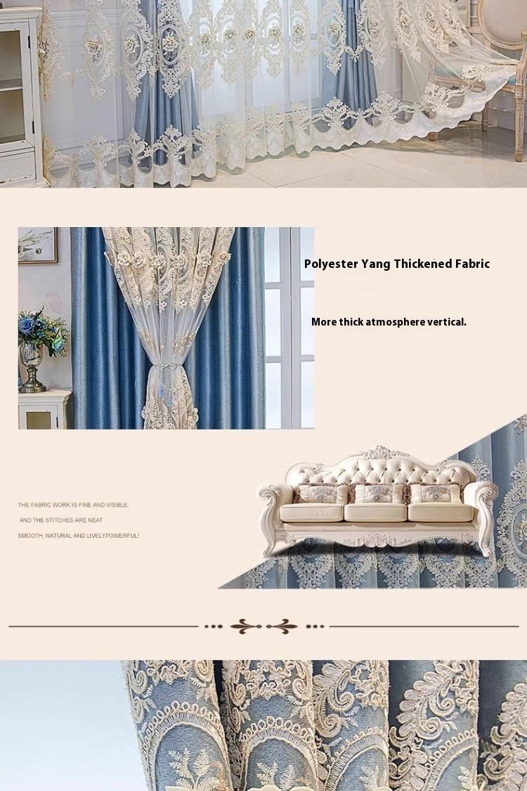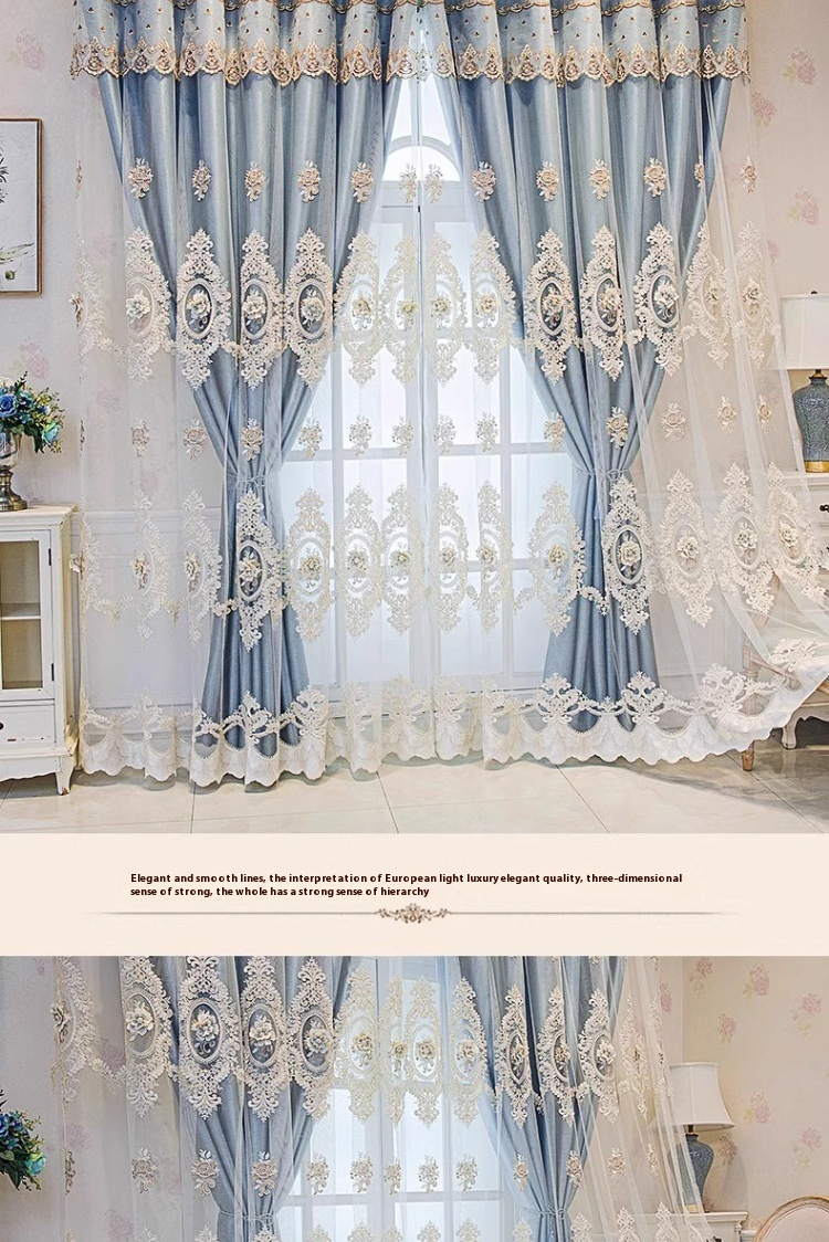 1 European double-layer blue curtain