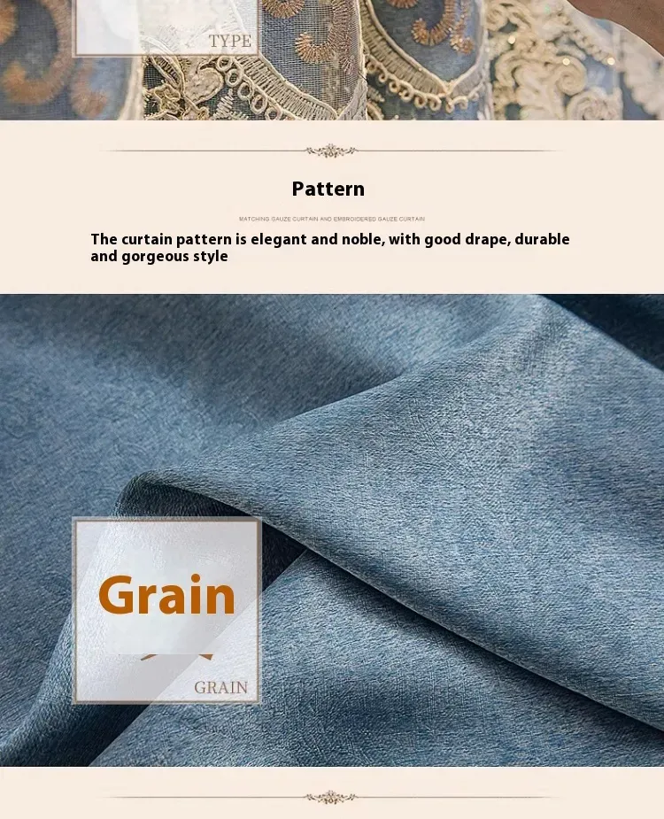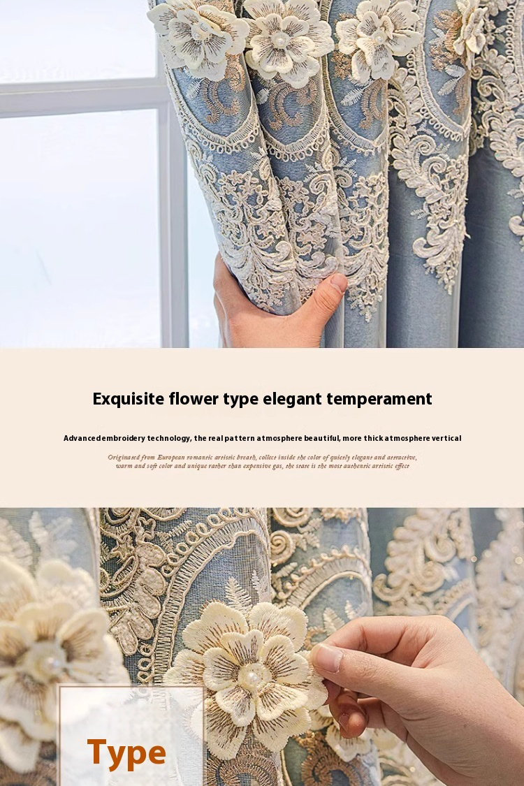 1 piece of European double-layer thick blue curtain, new high-end shading product, living room, bedroom, embossed embroidery