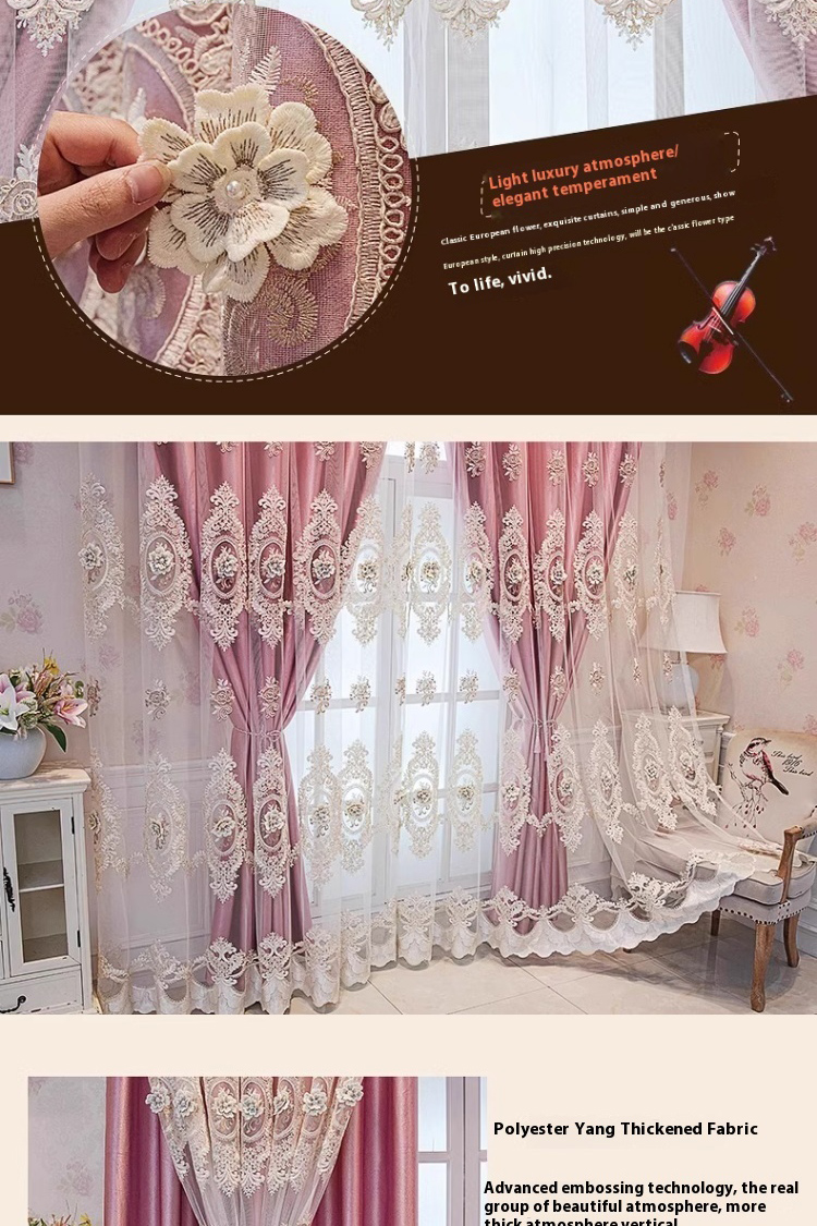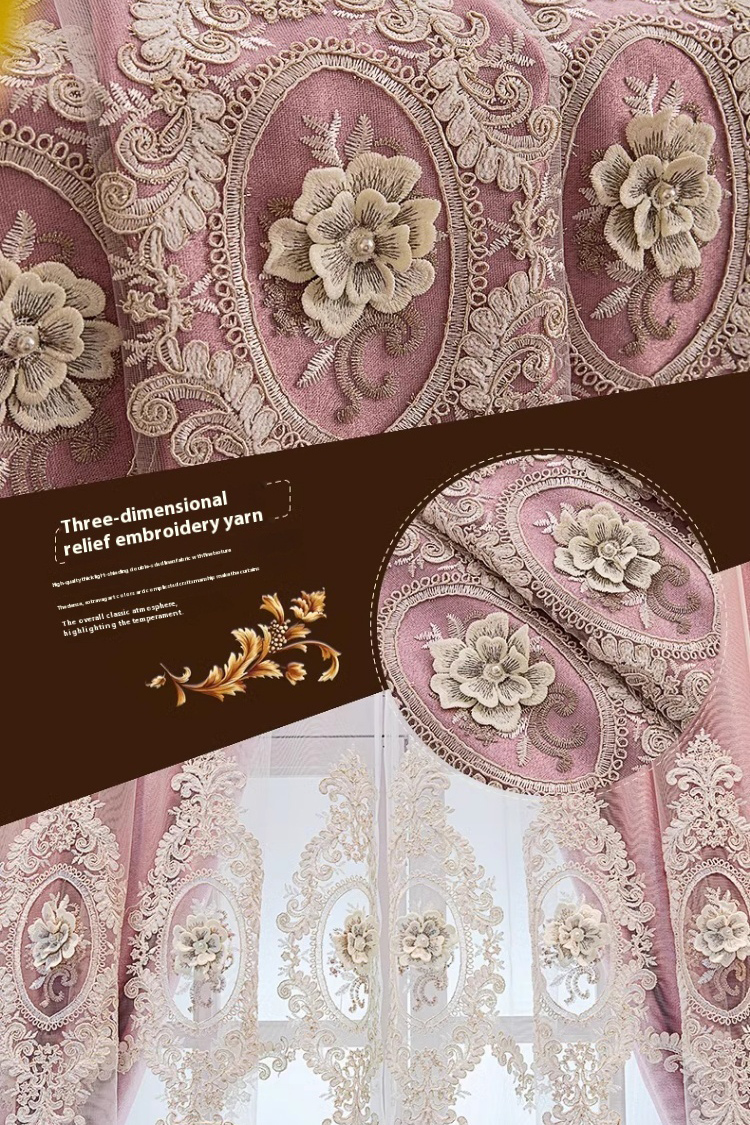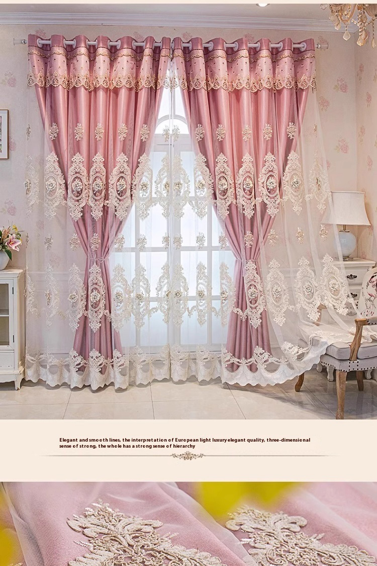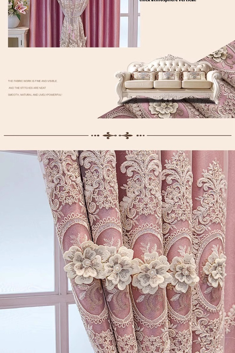 1 piece of European double-layer thick pink curtain, new high-end shading product, living room, bedroom, embossed embroidery