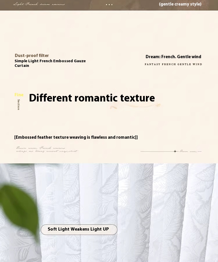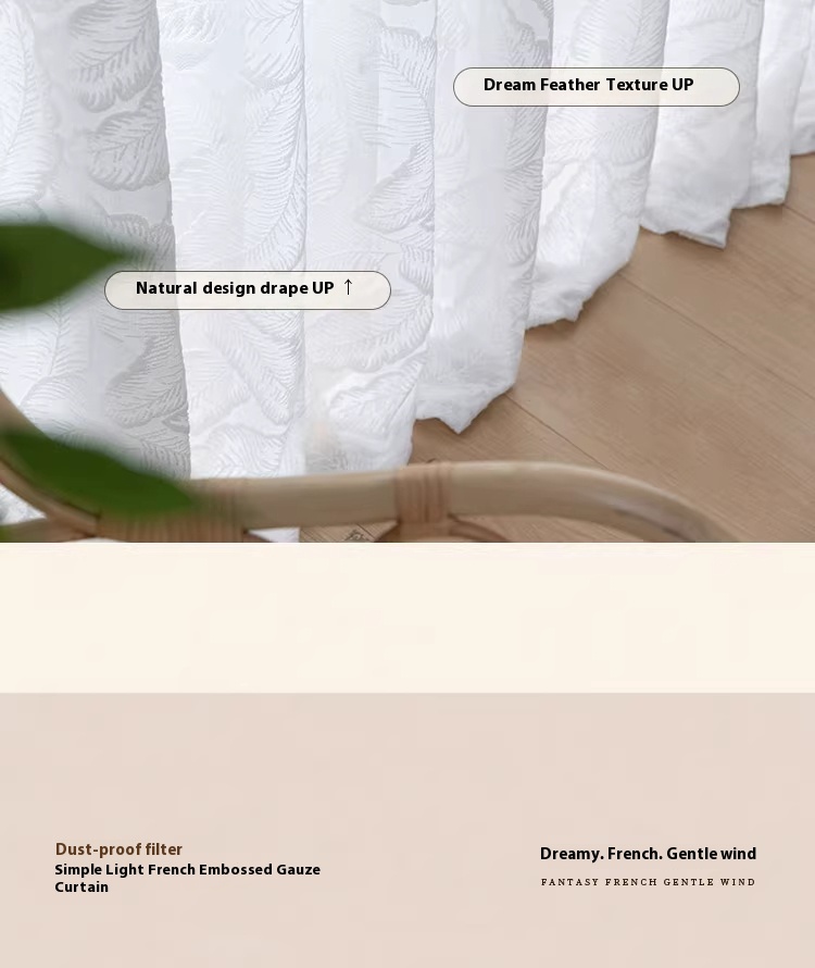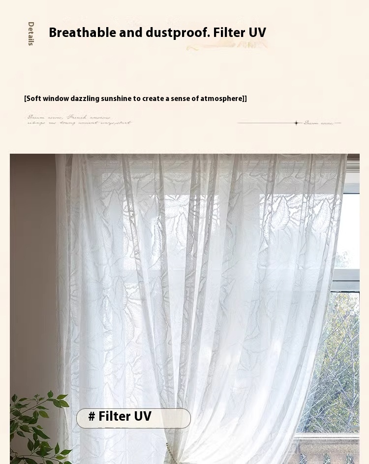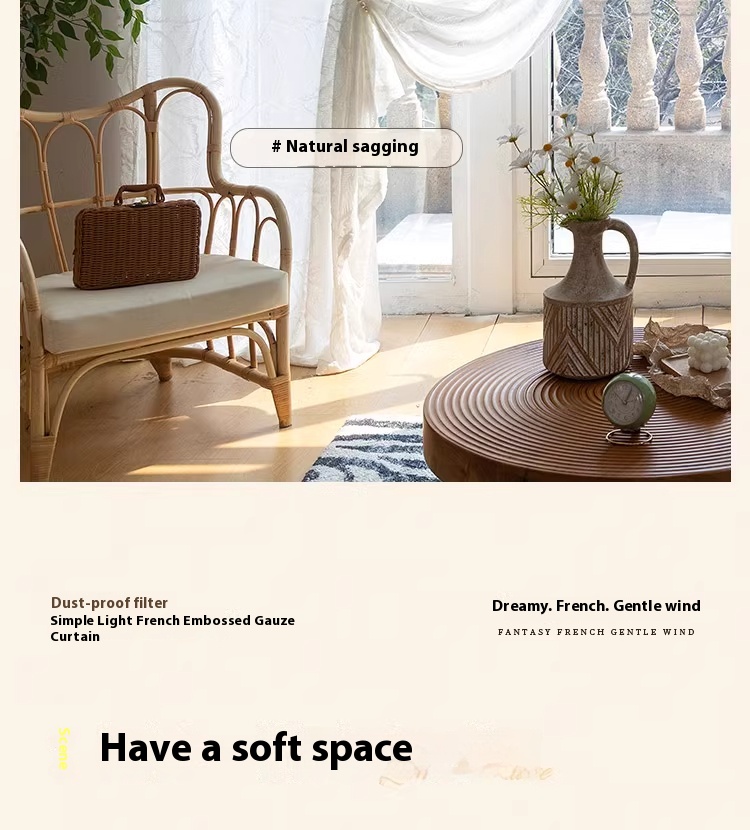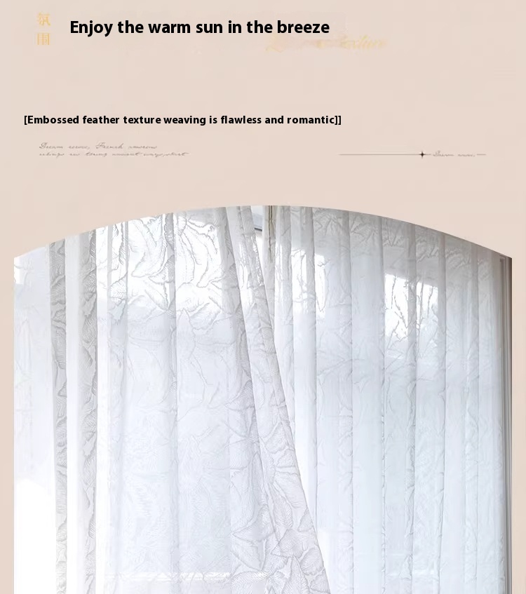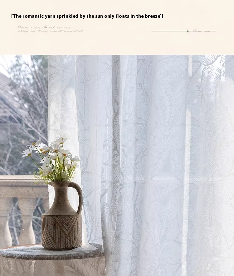 1 piece of screen curtain, bedroom, living room, French high-end, light luxury relief, translucent, non transparent window screen