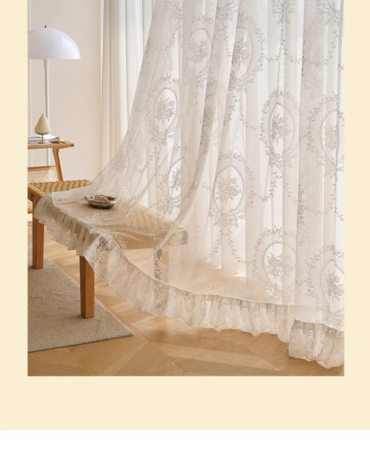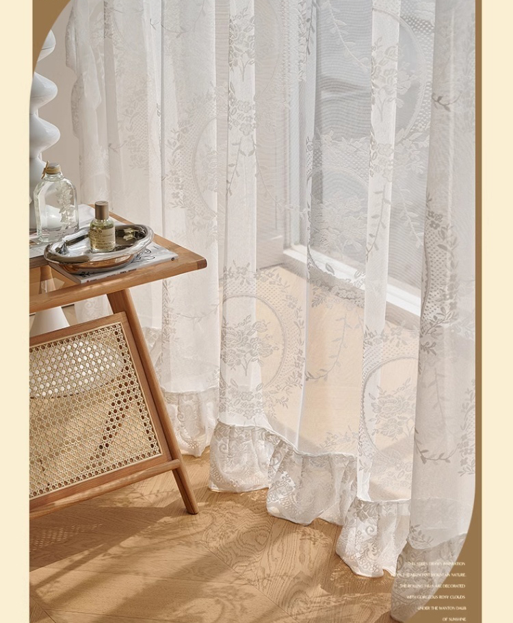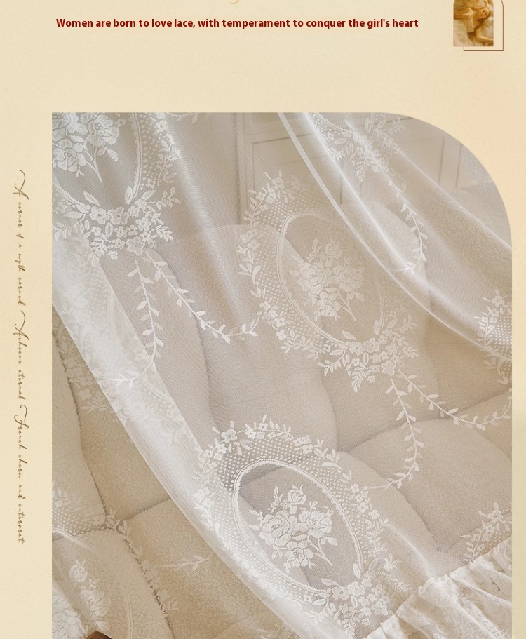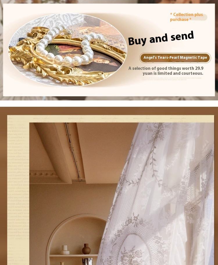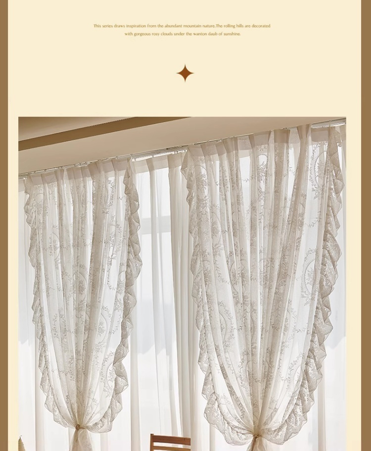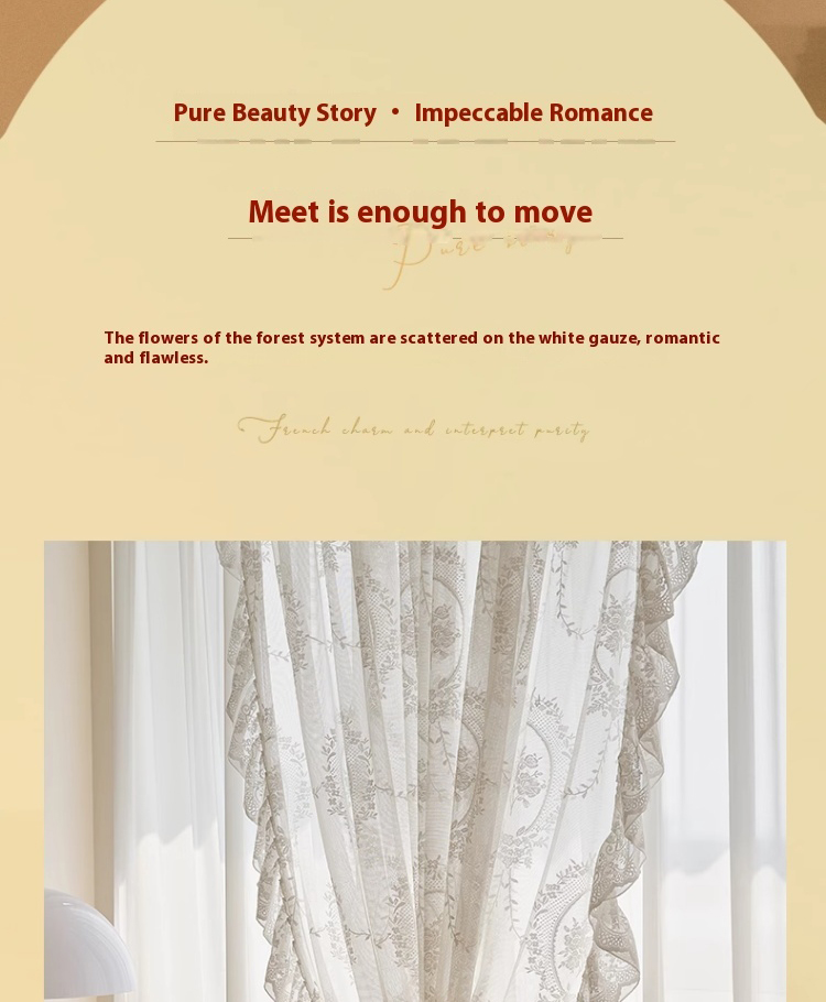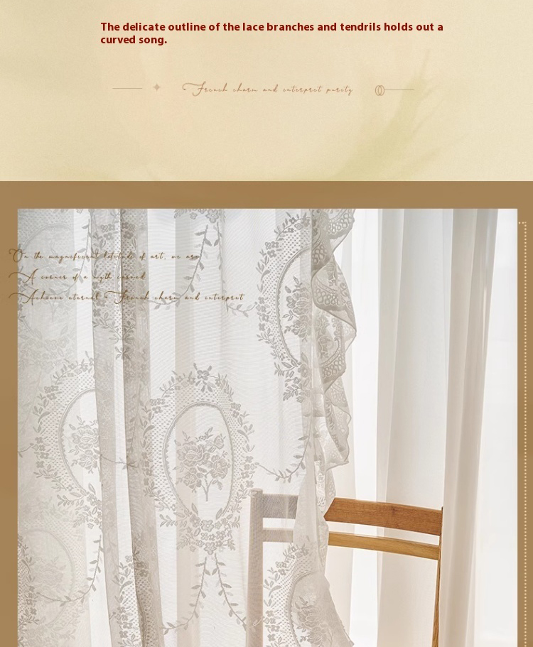 Dreamy sun protection and insulation curtains, living room curtains that are translucent but not transparent, French cream colored light luxury bay window partitions, new style