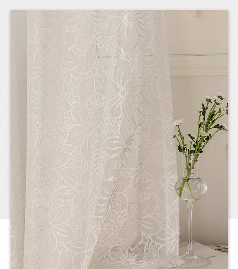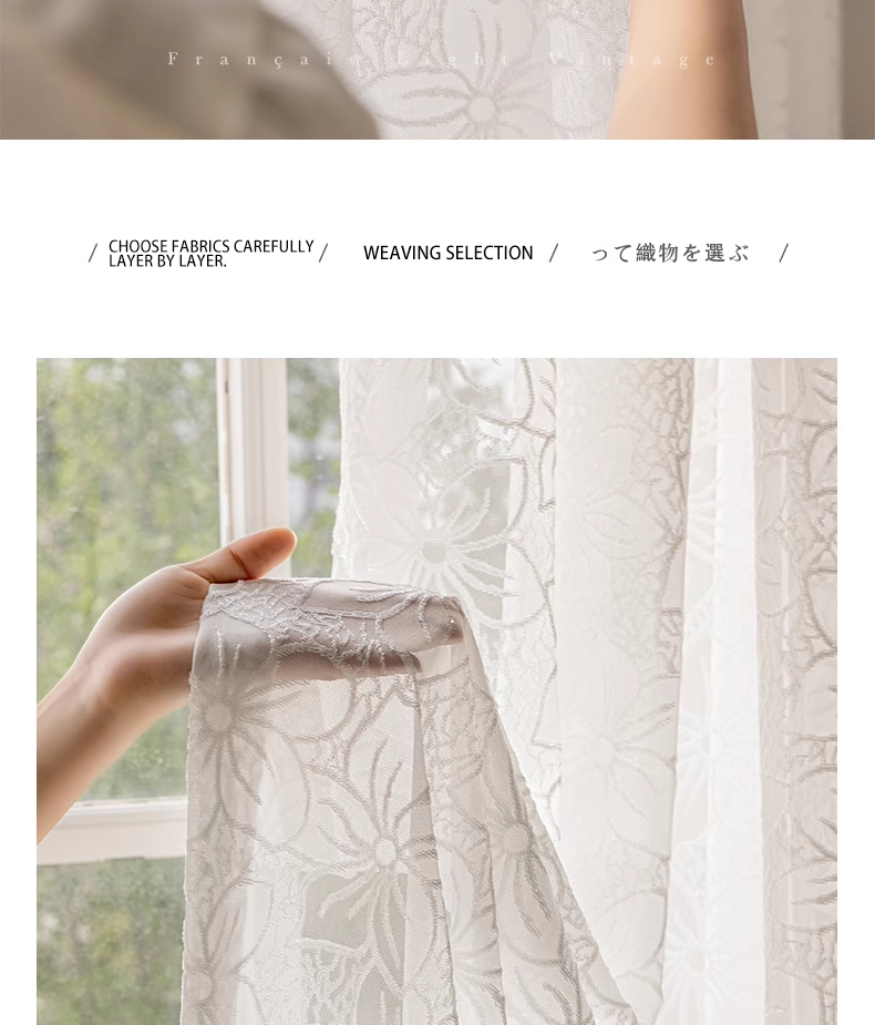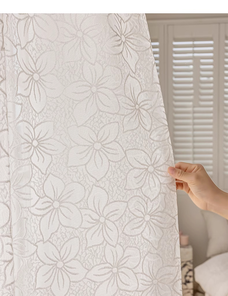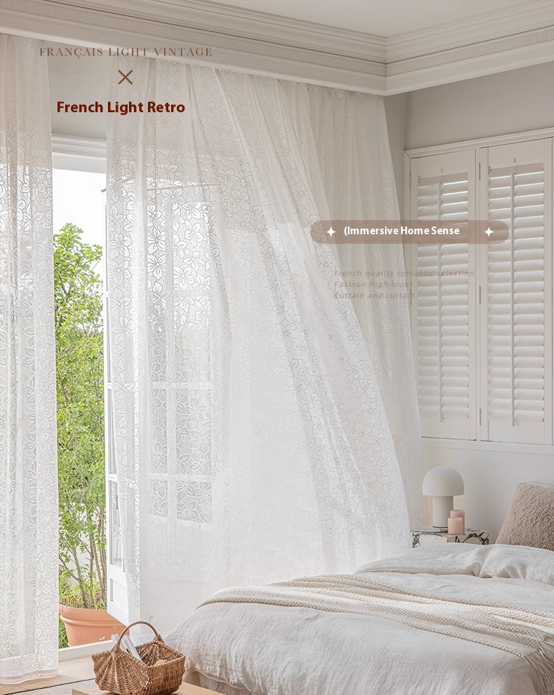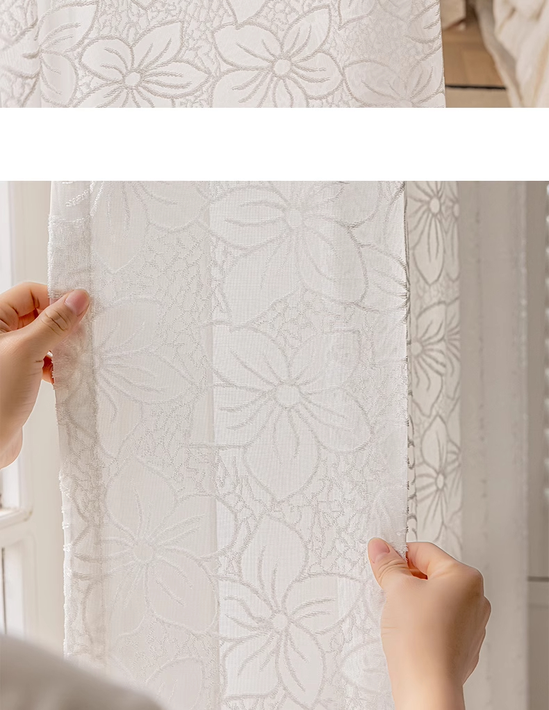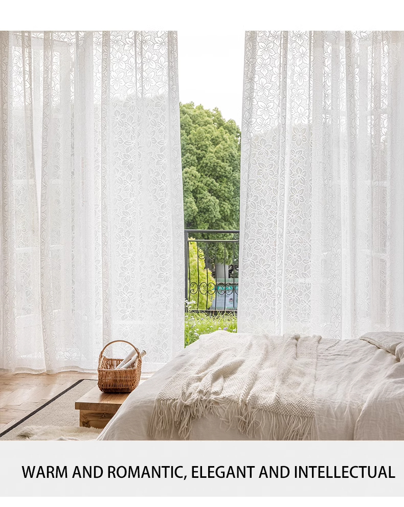New French style curtains with a light luxury and high-end feel, living room, bedroom, white translucent and non transparent window screen, 1 piece