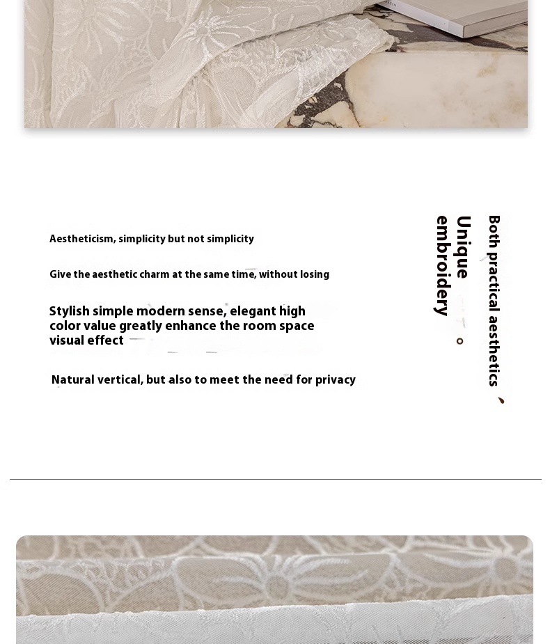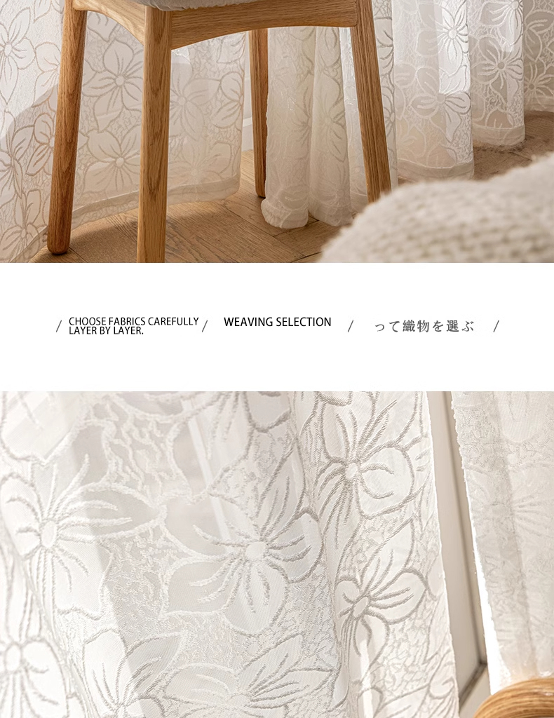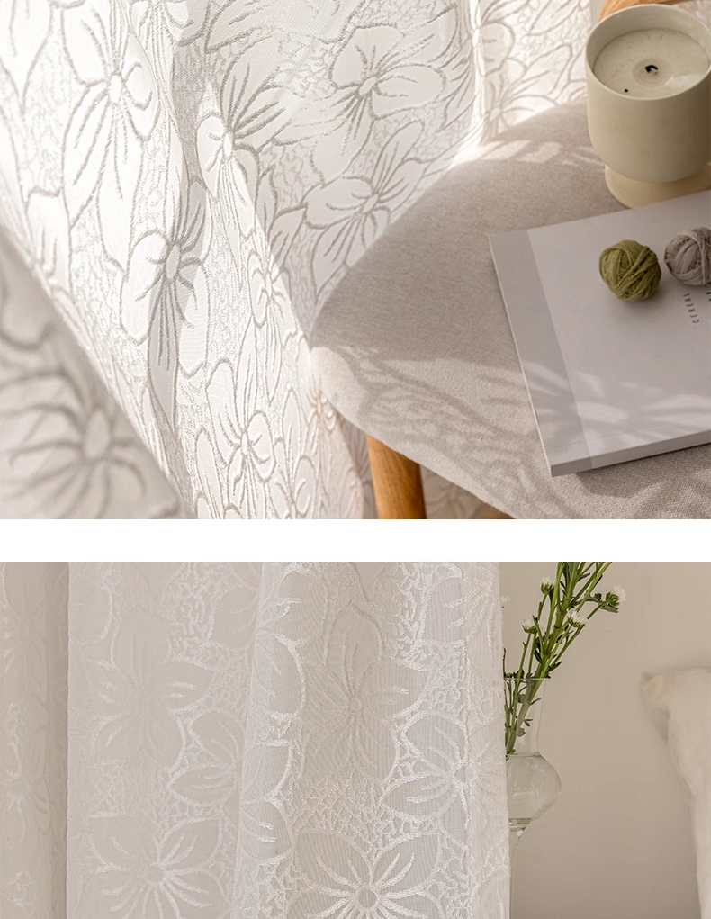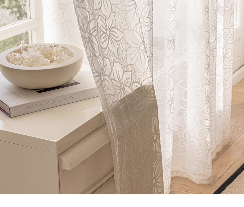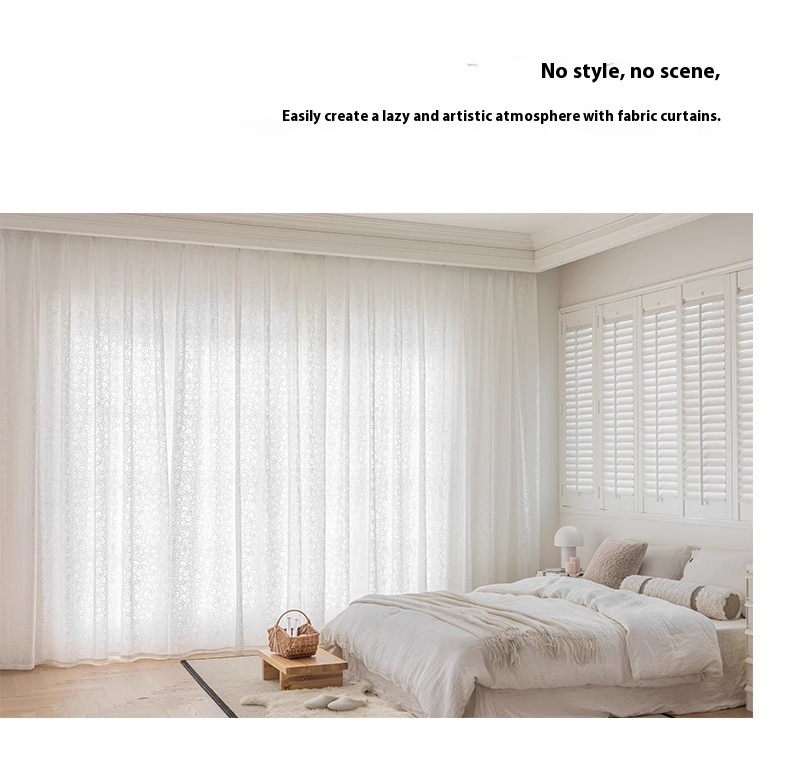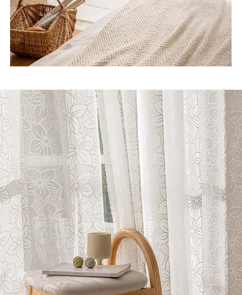 New French style curtains with a light luxury and high-end feel, living room, bedroom, white translucent and non transparent window screen, 1 piece